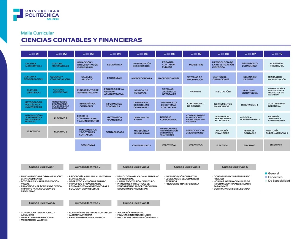 - Desde los primeros ciclos aprenderás contabilidad general, finanzas, costos, auditoría, tributación y gestión presupuestal. Desarrollarás pensamiento crítico, ética profesional y dominio de herramientas digitales para el registro, control y toma de decisiones financieras.